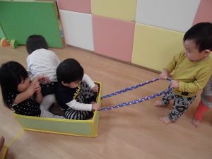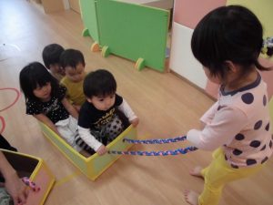 みんなが大好きな箱電車にお友だちと一緒に乗り