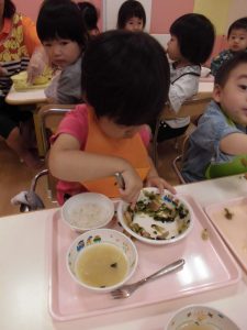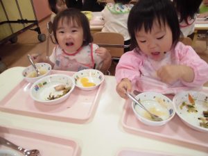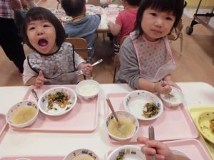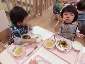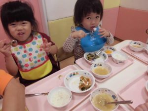久しぶりにお給食時の子どもたちです。