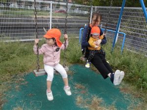 ブランコに先生と乗ったり、
