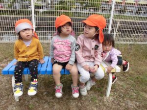 もも組のお友だちも先生と一緒に手を繋いで