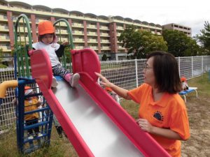 何度も何度も滑り台を楽しむ子どもたち。