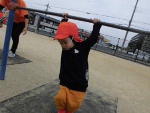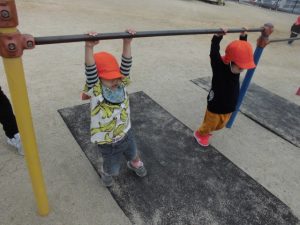 この公園には鉄棒があり大人気!!