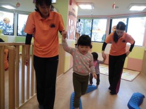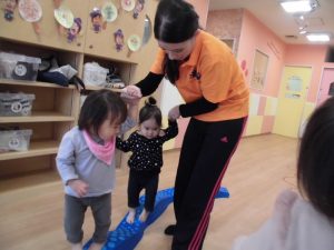 落ちそうになったら保育者に手を伸ばされます!