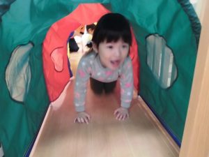 へびさん平均台、トンネルを出して