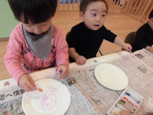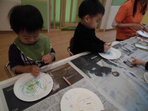 きのこができたら次は紙皿にお絵かき♪