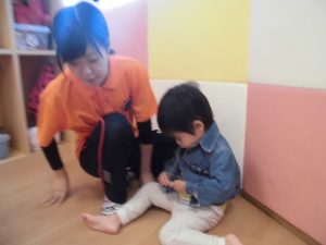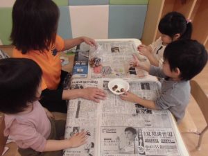 聞いた子どもたちはせっせと自分で
