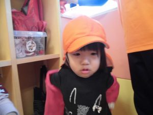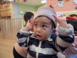 帽子を被って先生のお話を聞き待ちます。