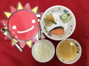本日のお給食です♪ ★ご飯 ★味噌汁 ★鮭の塩焼き ★切り干し大根のサラダ ★粉ふき芋 ※切り干し大...