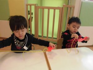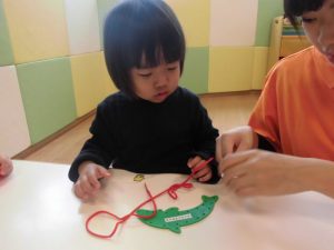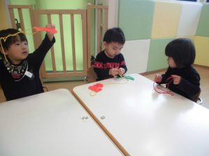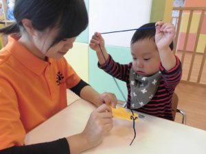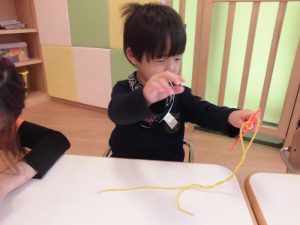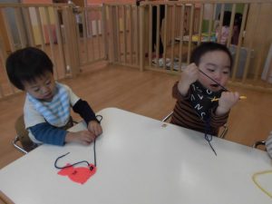 いちご組さんは紐通し、