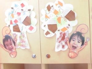 11月に入り、保育園の壁面や作品も