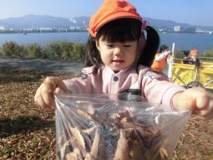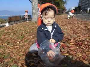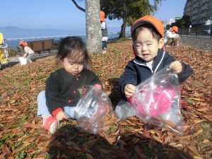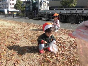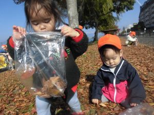 りんご組さんと一緒に落ち葉拾いに行きました!