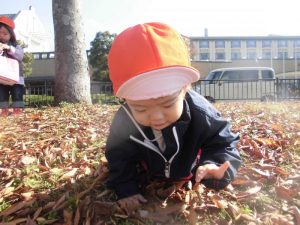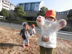 落ち葉がたくさん落ちていて遊びに行ったり