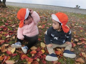 昨日拾ったきれいな落ち葉を拾ったり、