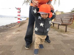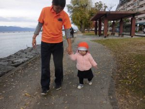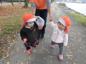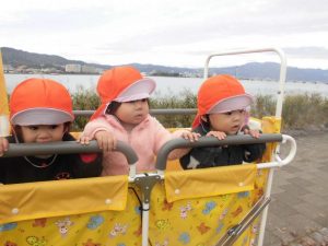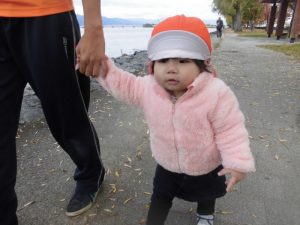 今日はもも組さんは湖岸沿いにお散歩!