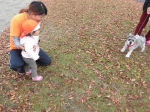 歩いて遊んでいるとお散歩中のわんちゃんに