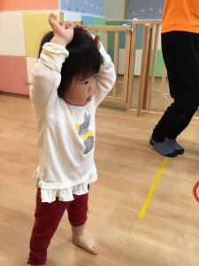 両手を広げてお友だちとぶつからないように