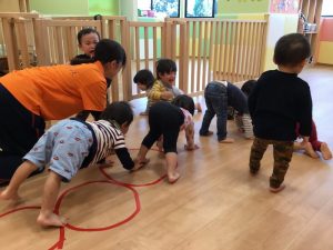 そのあと、いちご組さんは運動遊び、