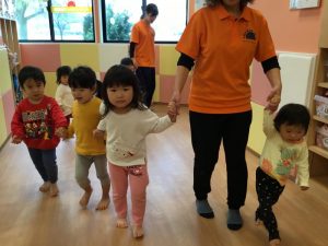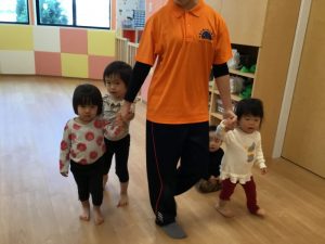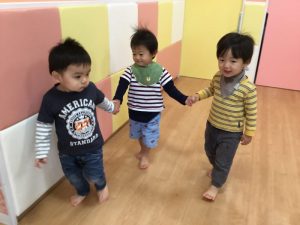 手を繋ぐと自然にお友だちに合わせて