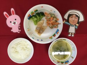 本日のお給食です♪ ★ご飯 ★味噌汁 ★魚の塩焼き ★切り干し大根の煮物 ★里芋の甘味噌からめ