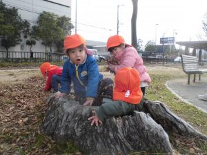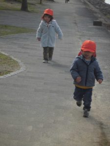 手をお友だちと繋いで歩くことも
