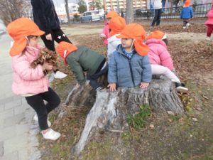 良いお天気の時間にりんご組さんといちご組さんは