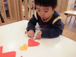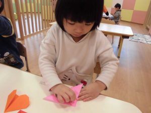 その周りには、折り紙でハートを折って