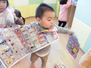 豆がある程度できたら自由に新聞遊び♪
