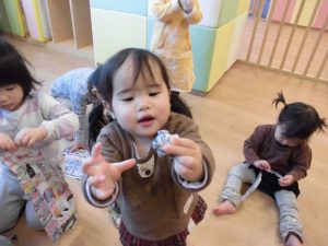 新聞遊びでは節分の時に使う豆を