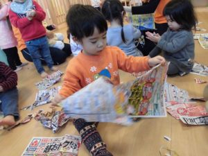 破いたり見立て遊びをしたり・・・