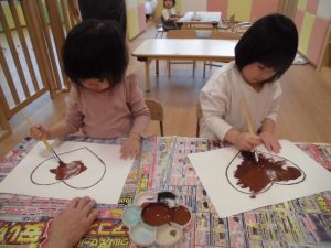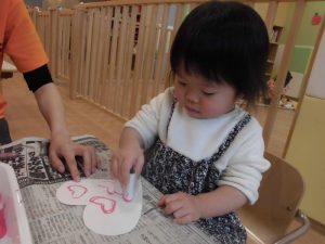 先生が描いた大きなハートの線からはみ出さないように