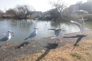 ゆりかもめさんにご飯を上げに行ったり・・・