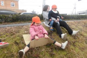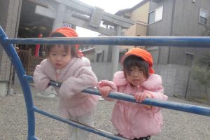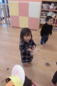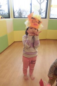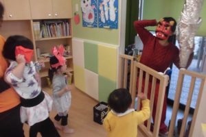 お友だちから『鬼は~外!福は~内!』と豆を投げます!