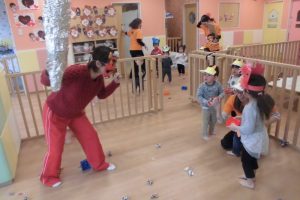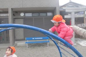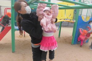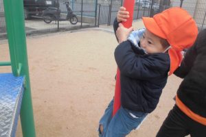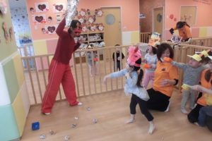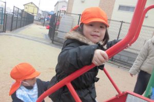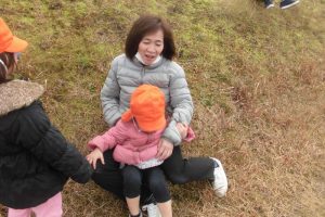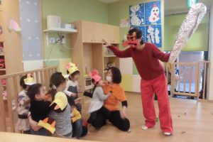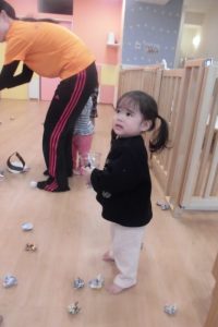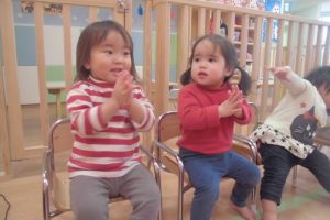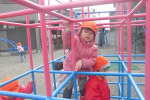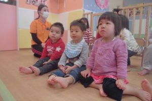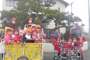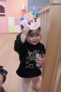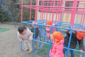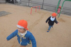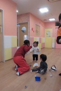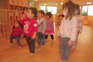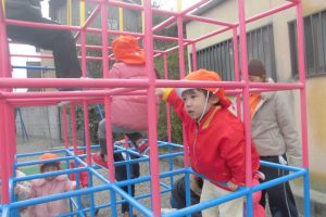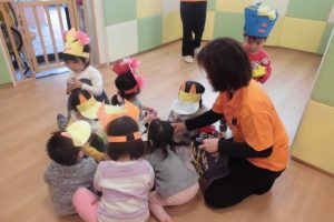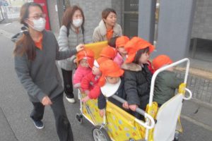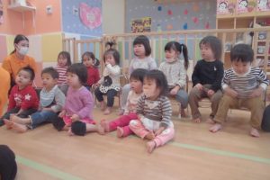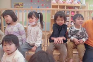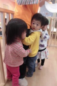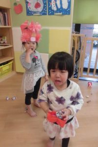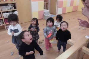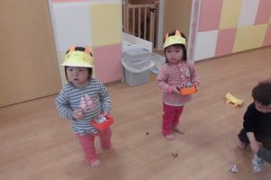 次に鬼さんはもも組といちご組の半分のお友だちの所へ