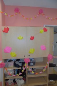 まずは卒園式の飾りの紹介から?