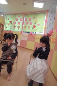 茶話会の間、いちご組さん・もも組さんは