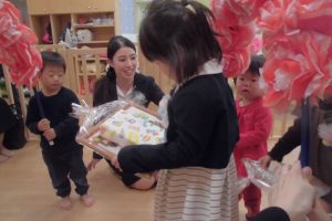 プレゼントをもらっていちご組さんが持つ