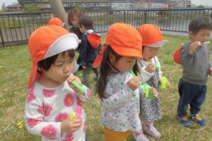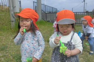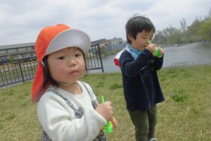 シャボン玉をみんなでして楽しんだり、