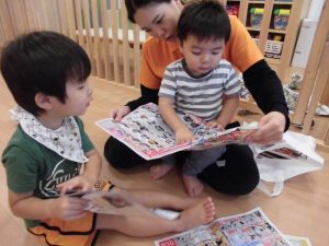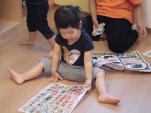 他には普段している『新聞あそび』を今回は