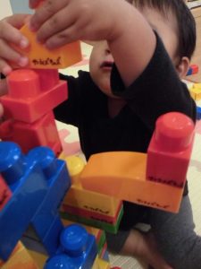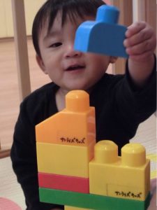 お友だちと一緒にブロックを積み上げたり