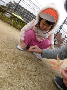 公園の地面にお絵かきをして楽しんだり…