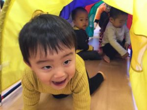 0歳児、1歳児さんでトンネルを出して