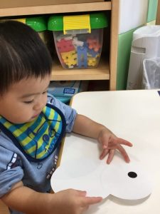 小さなおててで器用にシールを持ちぺたぺた![]()
