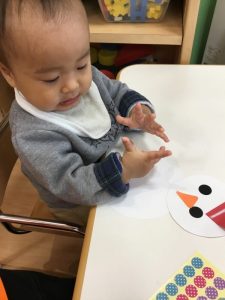 0歳児クラスは12月の壁面の製作もしました!