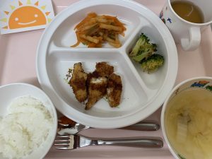 ご飯 味噌汁 チキンカツ マカロニソテー おかか和え