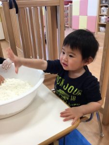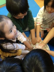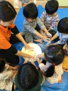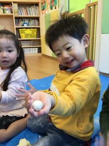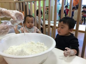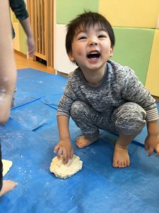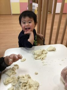 りんご組さんは、小麦粉粘土をして遊びました![]()