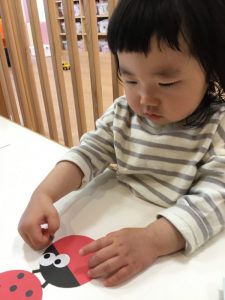 器用に小さなシールを指先で持ち貼り付けていましたよ。