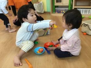 小さなお友だちに優しく接するお友だちが