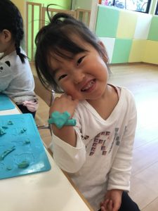 室内ではりんご組?さんリクエストの粘土遊びも
