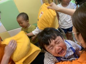 避難訓練では泣かなかったお友だちが
