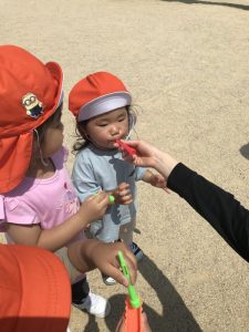 とのことで園でも水分補給の機会を多く設けたり、